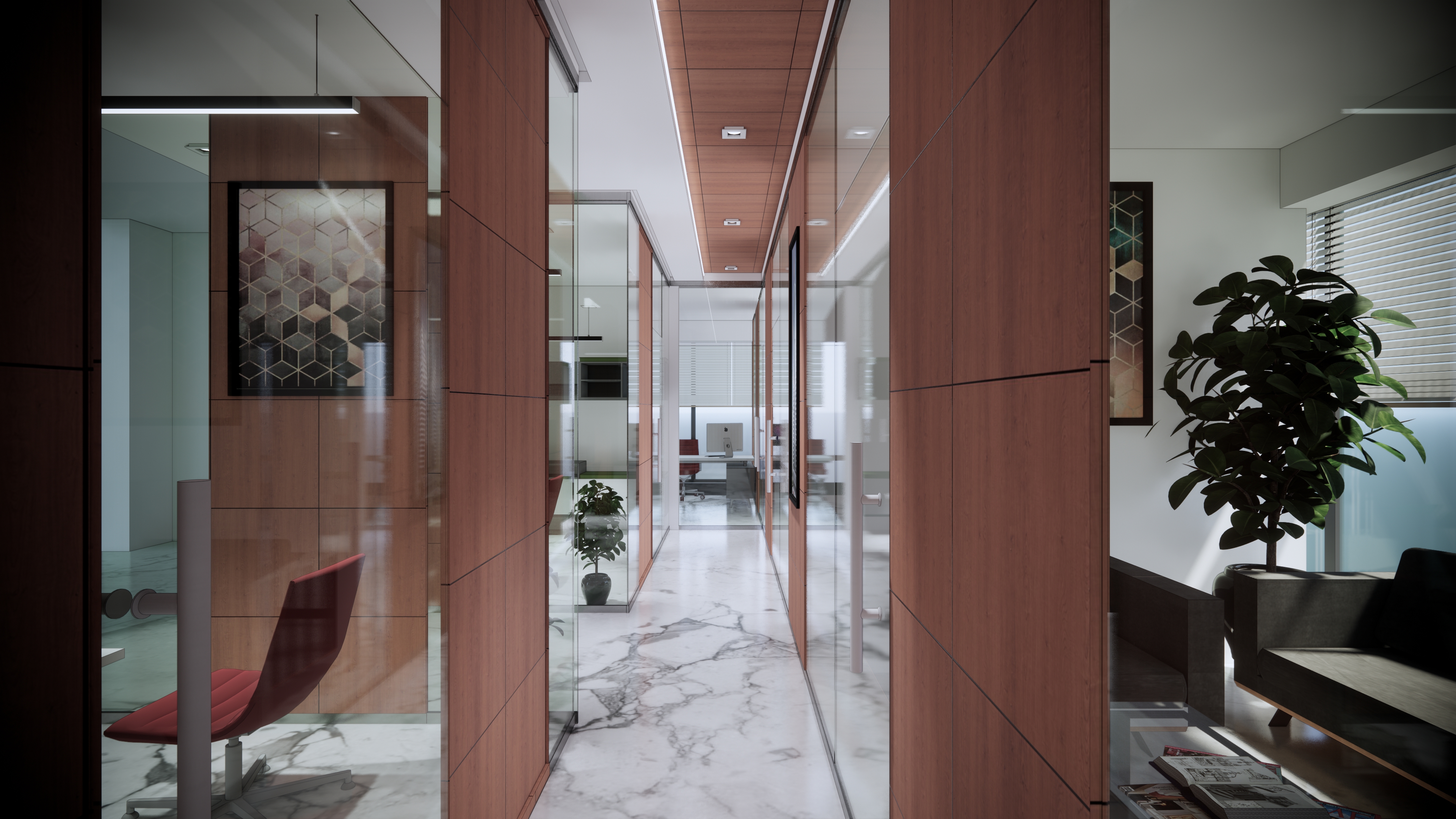 تم القيام بأعمال التصميم الخاص للمقر الاداري للشركه العقاريه بطابع يجمع بين البساطه و الأناقه.